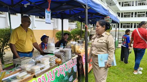 สำนักงานพัฒนาชุมชนจังหวัดชุมพร นำผู้ผลิต ผู้ประกอบการ OTOP และผลิตภัณฑ์ทางการเกษตรในพื้นที่จังหวัดชุมพร ร่วมกิจกรรม ตลาดนัดชุมชนชุมพร อยู่ดีมีสุข "คนชุมพร ยิ้มได้" ครั้งที่ 40 บริเวณสนามหญ้าอาคารศาลากลางจังหวัดชุมพร เพื่อจัดแสดงและจำหน่ายผลิตภัณฑ์ เพิ่มช่องทางการตลาด และเพิ่มรายได้แก่ชุมชน ซึ่งในครั้งนี้มีผู้ร่วมจัดแสดงและจำหน่ายผลิตภัณฑ์ทั้งสิ้น จำนวน 24 บูธ