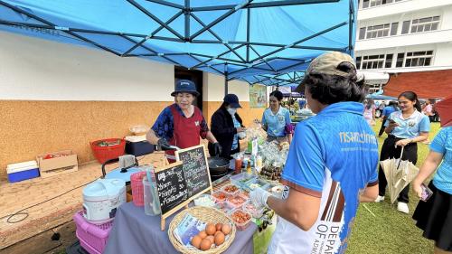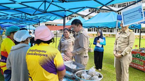 ในการนี้ นายเธียรชัย ชูกิตติวิบูลย์ ผู้ว่าราชการจังหวัดชุมพร พร้อมด้วย นางสาวประดับ ชูดำ พัฒนาการจังหวัดชุมพร เยี่ยมชมและให้กำลังใจผู้ผลิต ผู้ประกอบการ โดยมีหัวหน้าส่วนราชการ ข้าราชการ พนักงาน เจ้าหน้าที่ และประชาชนที่มาติดต่อราชการ ร่วมเดินเลือกซื้อสินค้าผลิตภัณฑ์ภายในตลาด มียอดจำหน่ายรวม 93,020 บาท และมียอดสะสมรวมจำนวน 40 ครั้ง เป็นเงิน 3,313,195 บาท