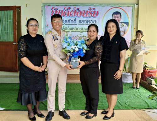 นางสาวประดับ ชูดำ พัฒนาการจังหวัดชุมพร พร้อมด้วย นางกานติกานต์ บัวเนียม ผู้อำนวยการกลุ่มงานประสานและสนับสนุนการบริหารงานพัฒนาชุมชน และนางสาวชลาภรณ์ ผิวเผือก ผู้อำนวยการกลุ่มงานสารสนเทศการพัฒนาชุมชน ร่วมแสดงความยินดีกับ นายจีรศักดิ์ แสงหอย นายอำเภอหลังสวน เนื่องในโอกาสได้รับการแต่งตั้งให้ดำรงตำแหน่ง ปลัดจังหวัดชุมพร