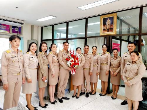 นางสาวประดับ ชูดำ พัฒนาการจังหวัดชุมพร พร้อมด้วย ผู้อำนวยการกลุ่มงาน และบุคลากรสำนักงานพัฒนาชุมชนจังหวัดชุมพร ร่วมแสดงความยินดีกับ นายทวีป ไทยสวี นายอำเภอเกาะยาว จังหวัดพังงา เนื่องในโอกาสได้รับการแต่งตั้งให้ดำรงตำแหน่ง นายอำเเภอสวี จังหวัดชุมพร