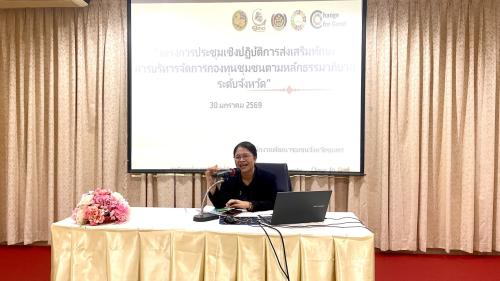 นางสาวประดับ ชูดำ พัฒนาการจังหวัดชุมพร มอบหมายให้ นางสาวชลาภรณ์ ผิวเผือก ผู้อำนวยการกลุ่มงานสารสนเทศการพัฒนาชุมชน พร้อมด้วย สิบเอกอัศวิน เนียมคำ นักวิชาการพัฒนาชุมชนชำนาญการพิเศษ และนักวิชาการกลุ่มงานสารสนเทศฯ จัดประชุมเชิงปฏิบัติการส่งเสริมทักษะการบริหารจัดการกองทุนชุมชนตามหลักธรรมาภิบาล ระดับจังหวัด โดยมีวัตถุประสงค์เพื่อสร้างความรู้ ความเข้าใจ ในแนวทางการดำเนินงานกองทุนชุมชนขับเคลื่อนเศรษฐกิจฐานราก และส่งเสริมการเข้าถึงแหล่งทุนของประชาชน กลุ่มเป้าหมายประกอบด้วย พัฒนาการอำเภอและเจ้าหน้าที่พัฒนาชุมชนอำเภอ จำนวน 16 คน โดยมีนางสาวบุษยมาศ ด้วงกูล รองอัยการจังหวัด สำนักงานอัยการคุ้มครองสิทธิฯ จังหวัดชุมพร และนางสาวทิพวรรณ์ บุรีรัตน์ นักวิชาการตรวจสอบบัญชีชำนาญการพิเศษ สำนักงานตรวจบัญชีสหกรณ์ชุมพร เป็นวิทยากร ซึ่งมีเนื้อหาประกอบด้วย
