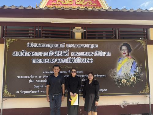นายเธียรชัย ชูกิตติวิบูลย์ ผู้ว่าราชการจังหวัดชุมพร เป็นประธานในพิธีบำเพ็ญกุศลสวดพระพุทธมนต์ ถวายพระราชกุศลแด่ สมเด็จพระนางเจ้าสิริกิติ์ พระบรมราชินีนาถ พระบรมราชชนนีพันปีหลวง โดยได้รับเมตตาจาก พระศรีวัชรนาถมุนี รองเจ้าคณะภาค 16 เจ้าอาวาสวัดโคกกะฐิน อำเภอทุ่งสง จังหวัดนครศรีธรรมราช เป็นประธานฝ่ายสงฆ์ พร้อมด้วยข้าราชการ ศาล ทหาร ตำรวจ และพสกนิกรทุกหมู่เหล่าเข้าร่วมพิธีอย่างพร้อมเพรียง เพื่อแสดงออกถึงความจงรักภักดีและน้อมสำนึกในพระมหากรุณาธิคุณอันหาที่สุดมิได้