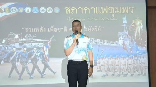 นายเธียรชัย ชูกิตติวิบูลย์ ผู้ว่าราชการจังหวัดชุมพร เป็นประธานในพิธีเปิดกิจกรรมสภากาแฟชุมพร ครั้งที่ 4/2569 "รวมพลัง เพื่อชาติ ศาสน์ กษัตริย์" โดยมีว่าทีร้อยตรี กิตติภพ รอดดอน รองผู้ว่าราชการจังหวัดชุมพร นายสกุล ดำรงเกียรติกุล รองผู้ว่าราชการจังหวัดชุมพร นายนพพร อุสิทธิ์ นายกองค์การบริหารส่วนจังหวัดชุมพร ศาลจังหวัดชุมพร มณฑลทหารบกที่ 44 หัวหน้าส่วนราชการ ข้าราชการ เจ้าหน้าที่ บุคลากรหน่วยงานภาครัฐ ภาคเอกชน และสื่อมวลชน เข้าร่วมกิจกรรม เพื่อรับประทานอาหารเช้า ประสานความร่วมมือและแลกเปลี่ยนความคิดเห็นระหว่างหน่วยงานต่าง ๆ และประชาสัมพันธ์ภารกิจของจังหวัดชุมพร โดยมีหน่วยงานสังกัดกระทรวงกลาโหมเป็นเจ้าภาพ